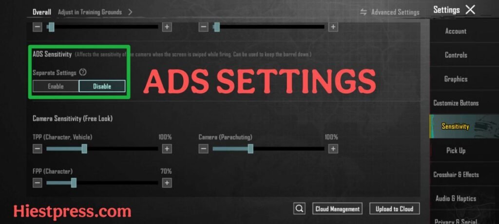 If you don’t know the meaning so ADS stands for “Aim Down Sight” which means when this settings apply when you click on the fire button that means if you want to customise even more than you can change ads settings for both gyroscope and lens, it can help you to reduce the recoil even more for your firearms,