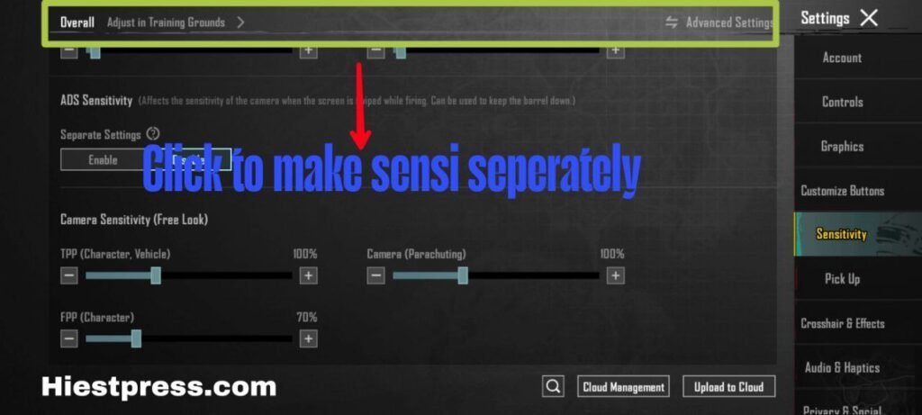 - Go to settings then click on sensitivity